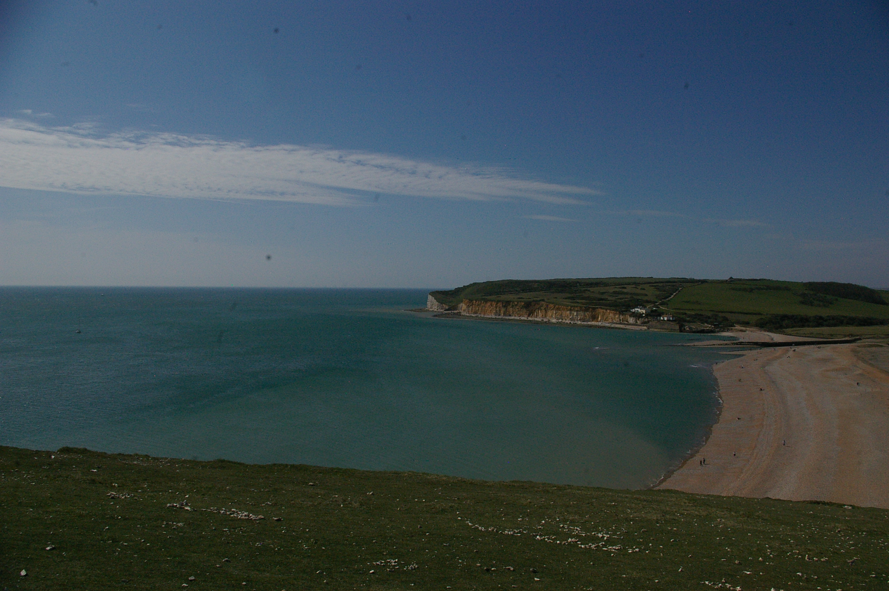 The Seven Sisters are a beautiful set of cliffs in southern England, with rolling hills behind and a sheer drop to the ocean in front. Very nice, relatively easy day hike, totaling about 20km and minimal elevation.