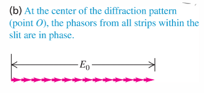 We can model a single slit diffraction as wavelets emitting parallel rays at an angle . Dividing the sources into two zones of width , then the angle of the first intensity minimum occurs when destructive interference between all of zone 1 and 2. First Destructive interference of a slit with width occurs when