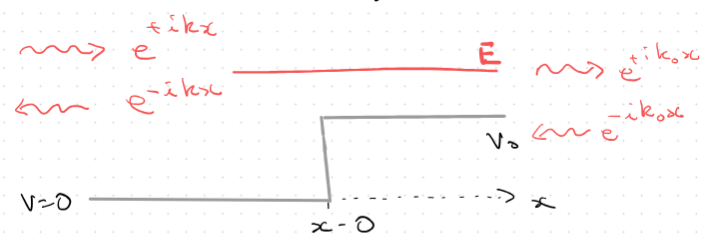 There is reflection and transmission: Lets use the probability current to quantify this: Recall: