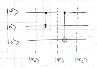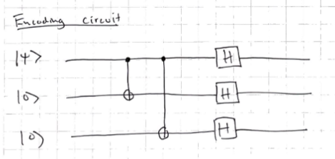 - At the point before the Hadamard gate similar to 3-qubit bit flip code