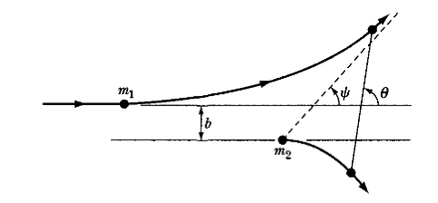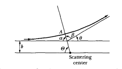 The relation between the impact parameter and scattering angle () is given by the following equation